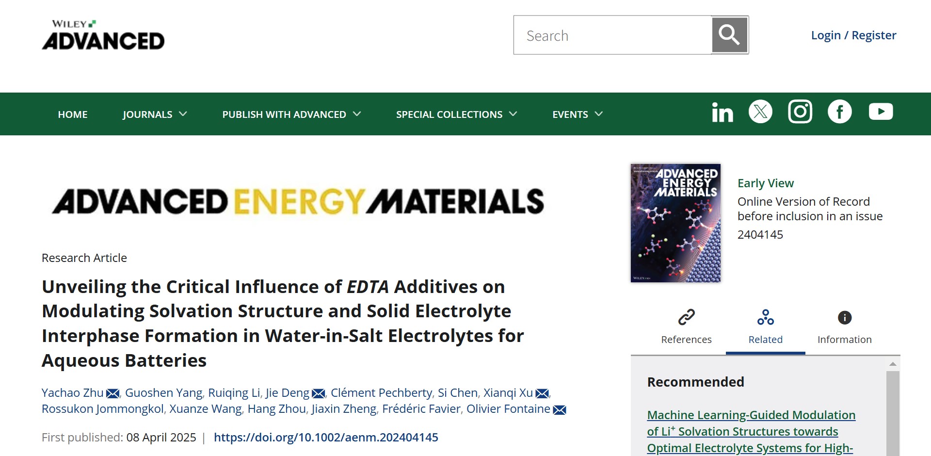 Advanced Energy Materials刊发学院科研成果