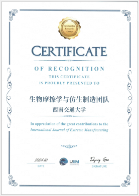 《极端制造》英文期刊创办于2019年,聚焦极端环境、极端尺度、极端功能等制造前沿领域,发展迅速,已成为机械工程领域顶尖国际学术期刊,最新影响因子达16.1,连续两年位列全球工程制造领域第一。学校生物摩擦学与仿生制造团队在副校长周仲荣教授的带领下,在国家自然科学基金重点项目等项目的支持下,依托高等学校“生物摩擦学与仿生制造”引智基地,以若干典型动物牙齿等为仿生模本,围绕盾构/TBM刀具、发动机叶片等重要装备部件开展研究,在牙齿耐磨功能机理、机械-化学仿生破岩机制、表面抗粘耐磨仿生设计与制造等方面取得了系列创新成果。