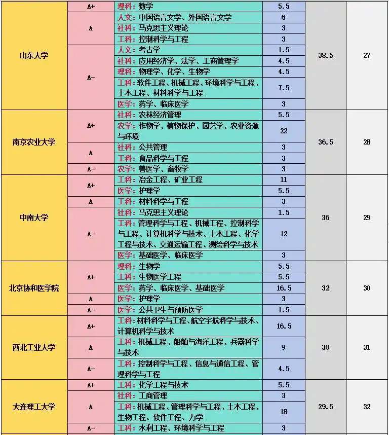 上海交通大学在工科和医学领域成绩斐然,11 个 A + 学科中,管理科学与工程、计算机科学与技术、机械工程、材料科学与技术等工科专业实力强劲,临床医学、基础医学、口腔医学等医学专业也表现出色,其医学教育和科研水平在国内名列前茅 。中国科学技术大学在理科领域优势突出,数学、物理学、化学、生物学、科学技术史、天文学、地球物理学、核科学与技术等 9 个学科获得 A+,在基础科学研究方面取得了众多突破性成果,培养了大批优秀的科研人才 。中国人民大学在人文社科领域独占鳌头,中国语言文学、理论经济学、应用经济学、法学、马克思主义理论、社会学、新闻传播学、工商管理、公共管理、农林经济管理、统计学等 11 个学科获评 A+,是人文社科领域的学术重镇 。