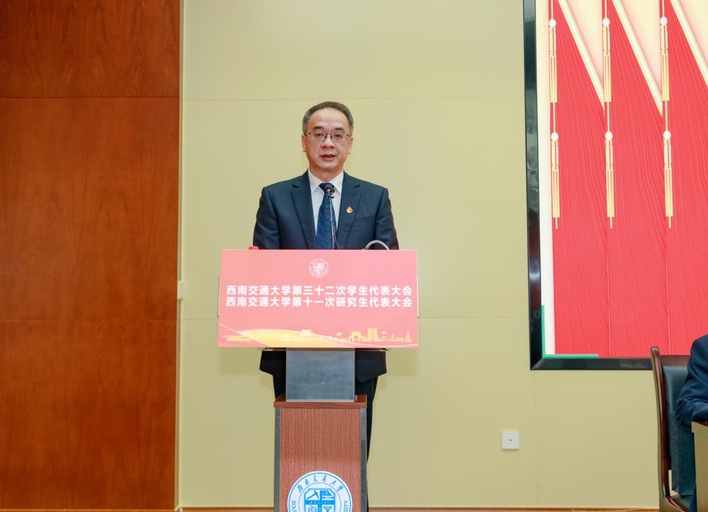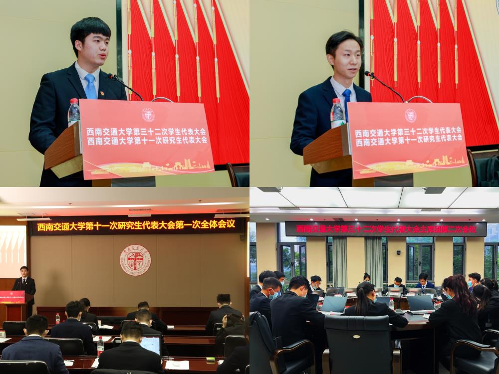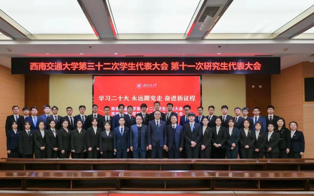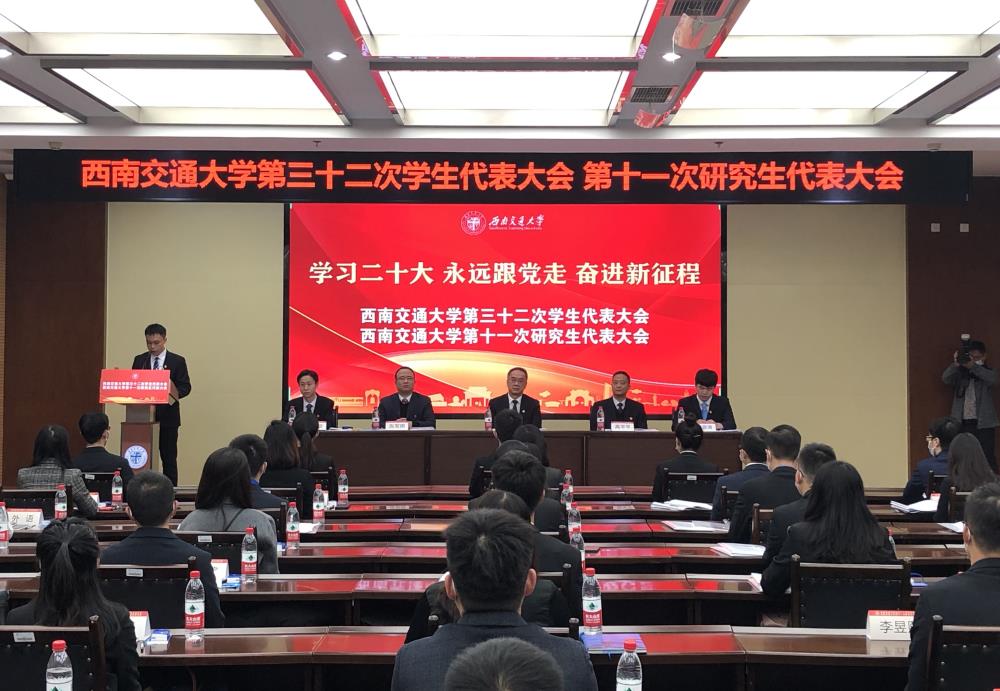 第三十二次学生代表大会、第十一次研究生代表大会于2022年11月26日在犀浦校区召开。学校党委副书记余敏明、党委学生工作部部长高平平、校团委书记张军琪、四川省学生联合会执行主席田政涛、成都市学生联合会执行主席李佳聪,学校各二级团组织负责人及各学生会、研究生会指导老师出席大会开幕会。此次大会采取线上线下相结合的方式举办,254名本科生代表、150名研究生代表参加了大会。