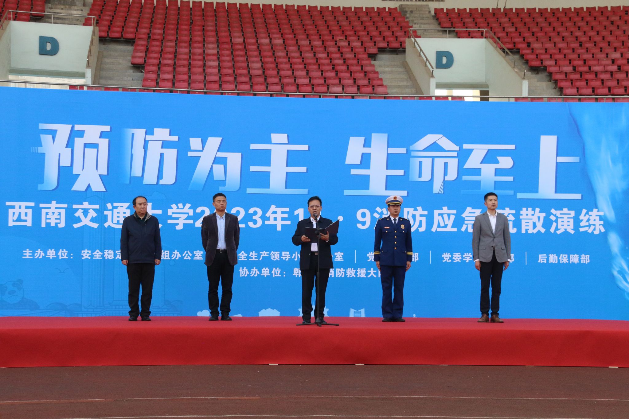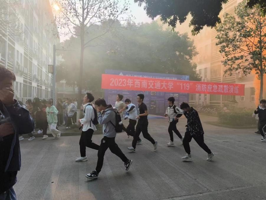 11月9日下午,为深入贯彻习近平总书记关于安全生产和消防救援工作的重要指示批示精神,按照国家有关部委和四川省相关部门对消防安全教育和宣传工作的要求,切实提高师生的消防安全意识、应对火灾等突发事件的处置能力,在全国第32个消防日之际,学校在犀浦校区举行“11·9”消防应急疏散演练活动。为深化演练效果,学校邀请郫都区消防救援大队全程参与并为广大师生现场讲解消防安全相关知识。近5000名师生参加演练,学校党委副书记、纪委书记张学龙担任本次演练总指挥。