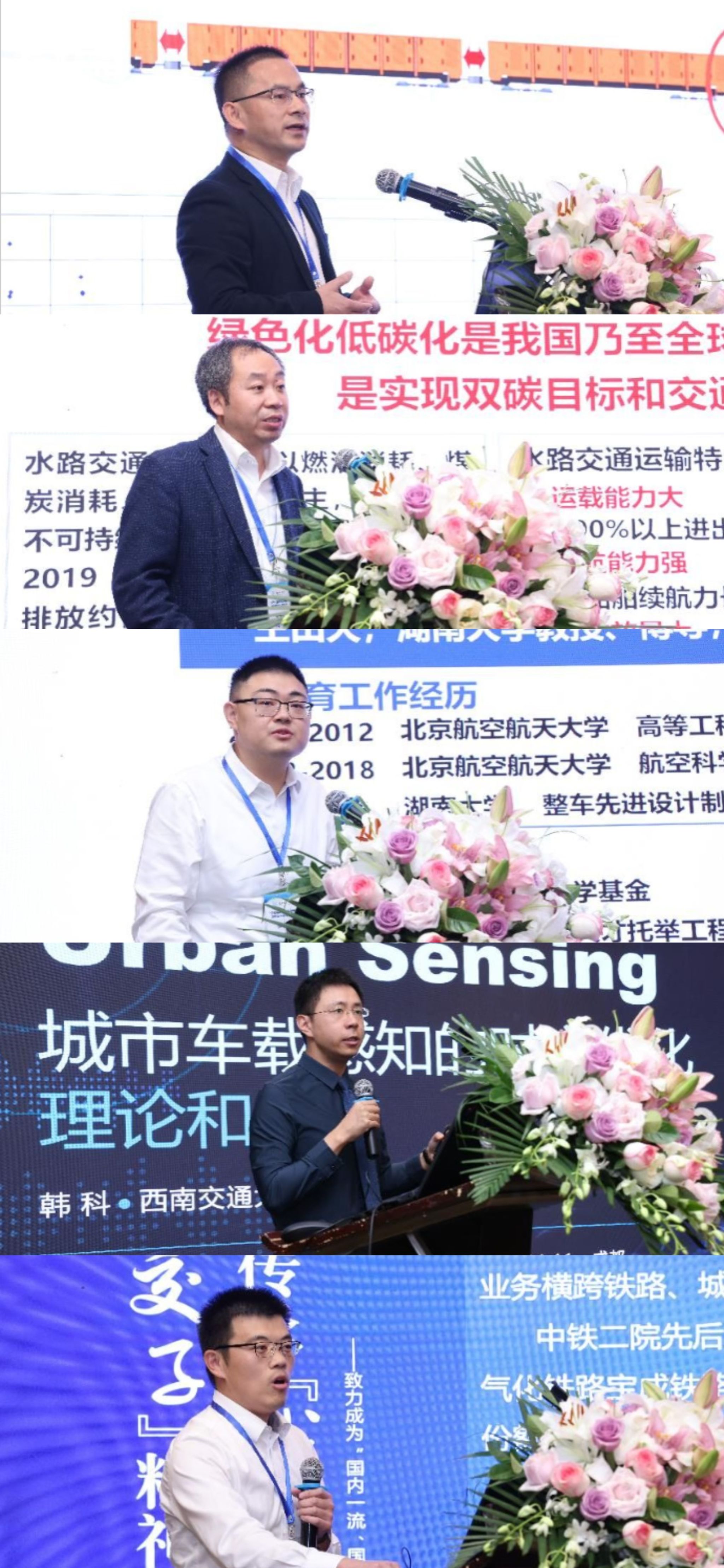 特邀报告阶段由轨道交通运载系统全国重点实验室副主任马光同研究员、陈再刚教授主持。王开云研究员以“重载列车通过道岔时的运行安全研究”为主题,从道岔区动力学试验、列车-道岔相互作用模型、列车脱轨机理等方面对重载列车关键技术作了详细介绍;袁成清教授以“双碳战略下的水路交通能源融合研究”为主题,报告了水路交通能源融合的关键技术、应用案例以及未来发展趋势;王田天教授以“轨道交通空气动力学运行安全研究”为主题,从列车/隧道耦合空气动力学及乘员舒适性、高速列车转向架积雪结冰等方面分享了列车空气动力学最新研究内容;韩科教授以“城市车载感知的时空优化理论和实践”为主题,以出租车、公交车、自备车、混合车队为例,展示了城市车载感知的时空优化最新理论和实践;余浩伟总工以“双碳背景下旅游轨道交通总体设计与技术创新”为主题,分享了国内外旅游轨道交通发展及应用情况,以及未来旅游轨道交通发展趋势。