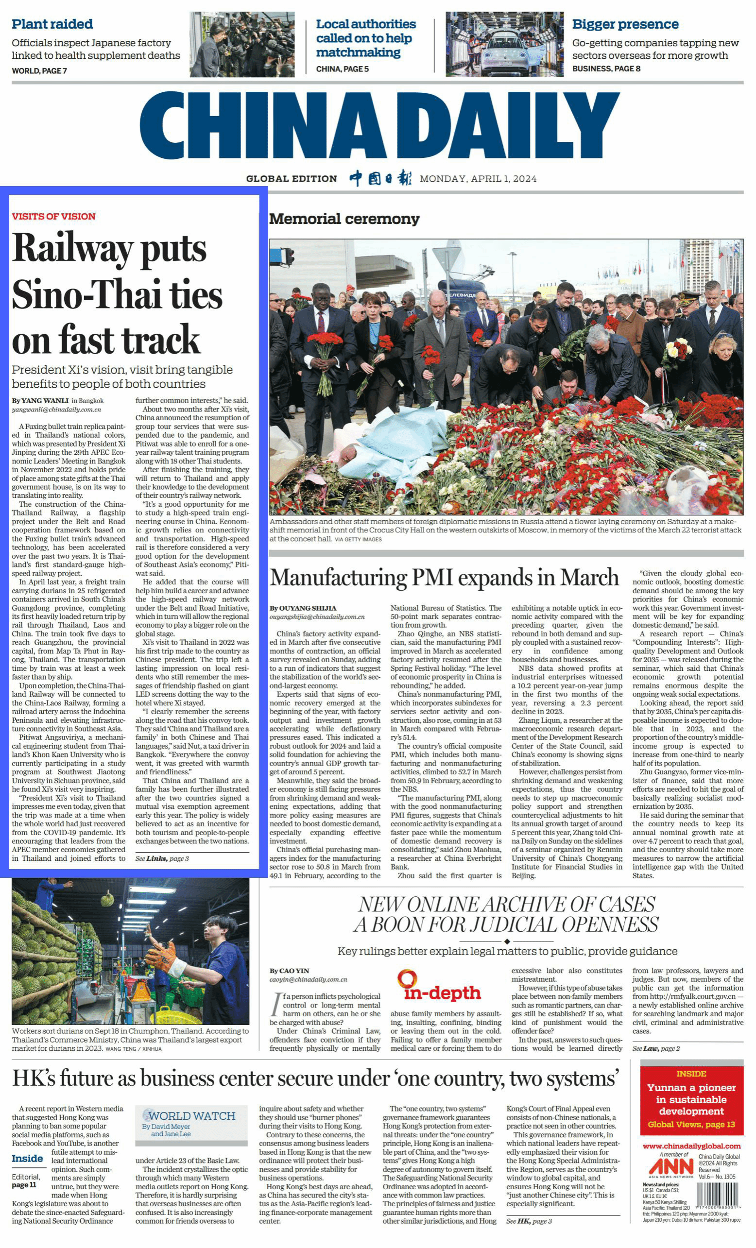 2024年4月1日,中国日报(China Daily)推出报道Railway puts Sino-Thai ties on fast track---President Xi’s vision, visit bring tangible benefits to people of both countries(铁路让中泰关系驶入快车道---习近平总书记的愿景为两国人民带来切实福祉)。中国日报记者采访了日本av大全
